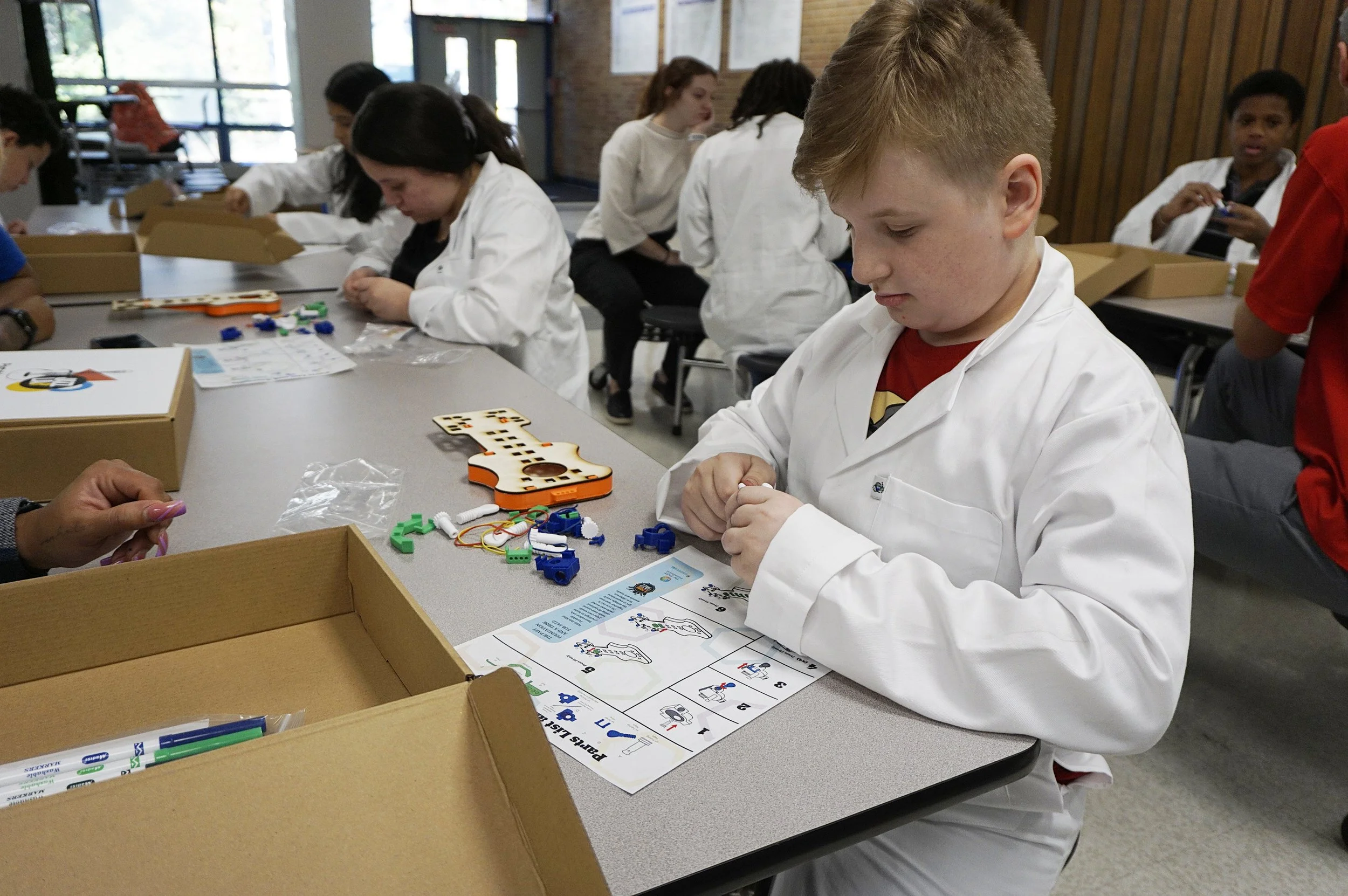 Designed for ages 7–14, every session invites hands-on exploration: sound waves and instrument design, rhythm and circuitry, VR immersion, and DIY builds. At the center of it all? A live jazz trio —who doesn't just perform, but teach, question, and co-create alongside students. Joined by a certified music therapist who brings a whole-child lens to every session, Jazz Lab™ goes beyond hands-on to nurture social, emotional, and cognitive growth.